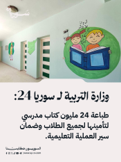 وزارة التربية لـ سوريا 24: طباعة 24 مليون كتاب مدرسي لتأمينها لجميع الطلاب وضمان سير العملية التعليمية 18/09/2025
