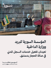 المؤسسة السورية للبريد ووزارة الداخلية تعيدان تفعيل خدمات السجل المدني في صالة الحجاز بدمشق. 11/09/2025