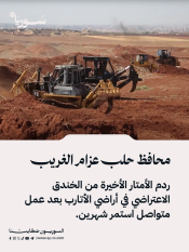محافظ حلب عزام الغريب ردم الأمتار الأخيرة من الخندق الاعتراضي في أراضي الأتارب بعد عمل متواصل استمر شهرين. 11/09/2025