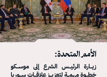 الأمم المتحدة: زيارة الرئيس الشرع إلى موسكو خطوة مهمة لتعزيز علاقات سوريا الدولية