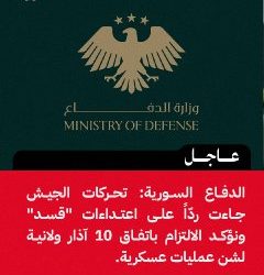 الدفاع السورية: تحركات الجيش جاءت ردّاً على اعتداءات “قسد” ونؤكد الالتزام باتفاق 10 آذار ولانية لشن عمليات عسكرية