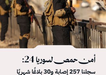 أمن حمص لسوريا 24: سجلنا 257 إصابة و30 بلاغًا شهريًا بسبب الرصاص الطائش بين كانون الثاني وتموز 2025.