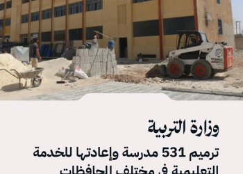 وزارة التربية: ترميم 531 مدرسة وإعادتها للخدمة التعليمية في مختلف المحافظات