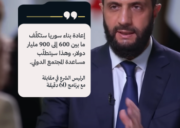 إعادة بناء سوريا ستكلّف ما بين 600 إلى 900 مليار دولار، وهذا سيتطلّب مساعدة المجتمع الدولي.