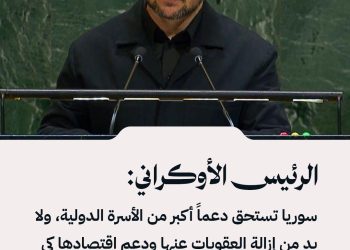 الرئيس الأوكراني: سوريا تستحق دعماً أكبر من الأسرة الدولية، ولا بد من إزالة العقوبات عنها ودعم اقتصادها كي تتمكن من النهوض.