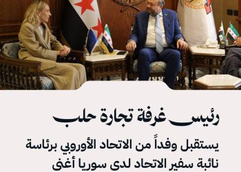 رئيس غرفة تجارة حلب يستقبل وفداً من الاتحاد الأوروبي برئاسة نائبة سفير الاتحاد لدى سوريا أغني غلاباس كيتي.