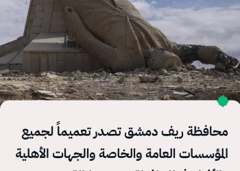 محافظة ريف دمشق تصدر تعميماً لجميع المؤسسات العامة والخاصة والجهات الأهلية والأفراد في المحافظة بضرورة إزالة رموز النظام البائد