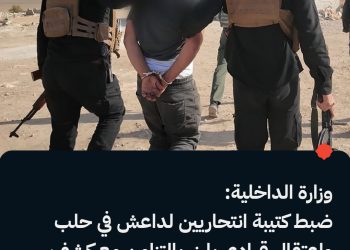 وزارة الداخلية: ضبط كتيبة انتحاريين لداعش في حلب واعتقال قيادي بارز، بالتزامن مع كشف خلايا نائمة في حمص.
