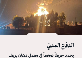 الدفاع المدني يخمد حريقاً ضخماً في معمل دهان بريف إدلب بعد ساعات من العمل